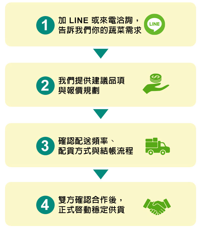 與南部農場合作,供應穩定,品質一致